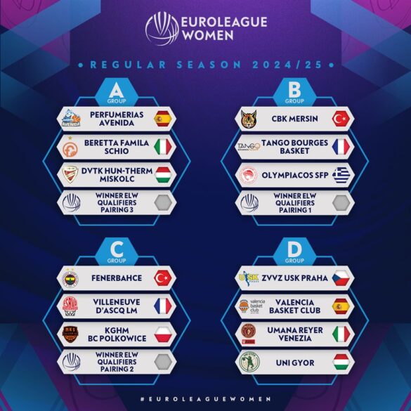 Gruppo A per il Beretta Famila Schio, che affronterà le spagnole del Perfumerias Avenida, le ungheresi del DVTK Miskolc e la vincente del Qualifier 3 di EuroLeague Women. Il Qualifier che interessa Schio è quello tra Basket Landes e Besiktas, che tra l’altro deciderà anche l’avversaria di Geas in EuroCup Women, in un curioso incrocio (la perdente “retrocede” in EuroCup Women). Per l’Umana Reyer Venezia già certe tutte le avversarie: c’è il temibile USK Praga, l’ambiziosa Valencia Basket e l’Uni Gyor, formazione ungherese.