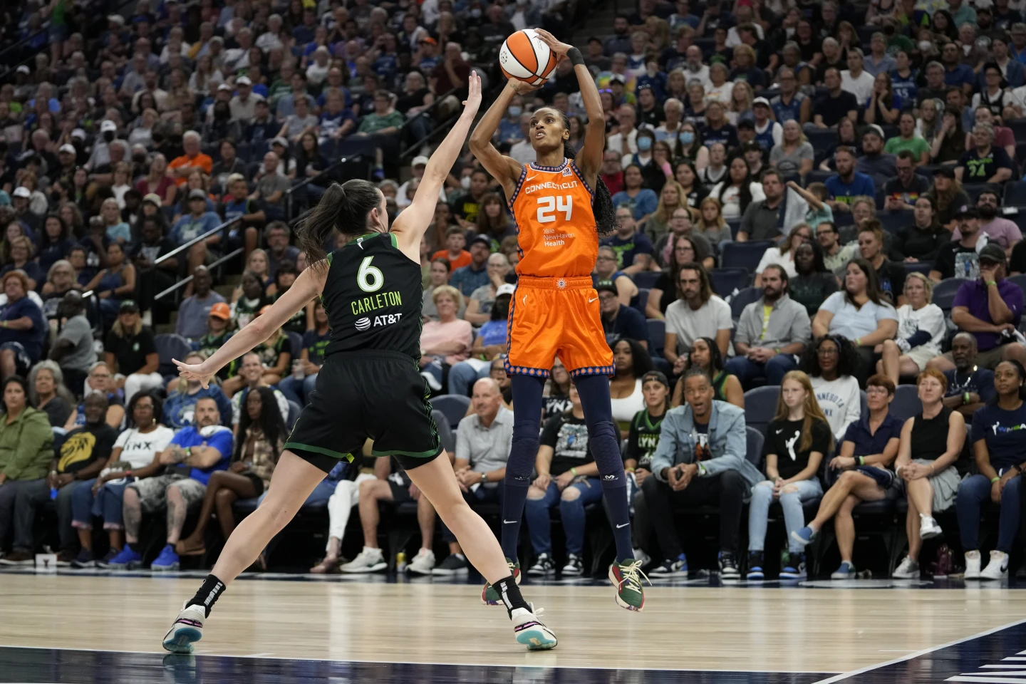 DeWanna Bonner e Alyssa Thomas hanno smontato pezzo per pezzo la difesa delle Lynx attaccando il canestro con la consueta irruenza (Thomas) e creando buoni tiri piazzati soprattutto per una Tyasha Harris prontissima. A metà primo quarto Connecticut era già avanti per 20-9 e solo con un buon impatto, durato però troppo poco, di Diamond Miller Minnesota era riuscita a riportarsi in parità a inizio secondo periodo.