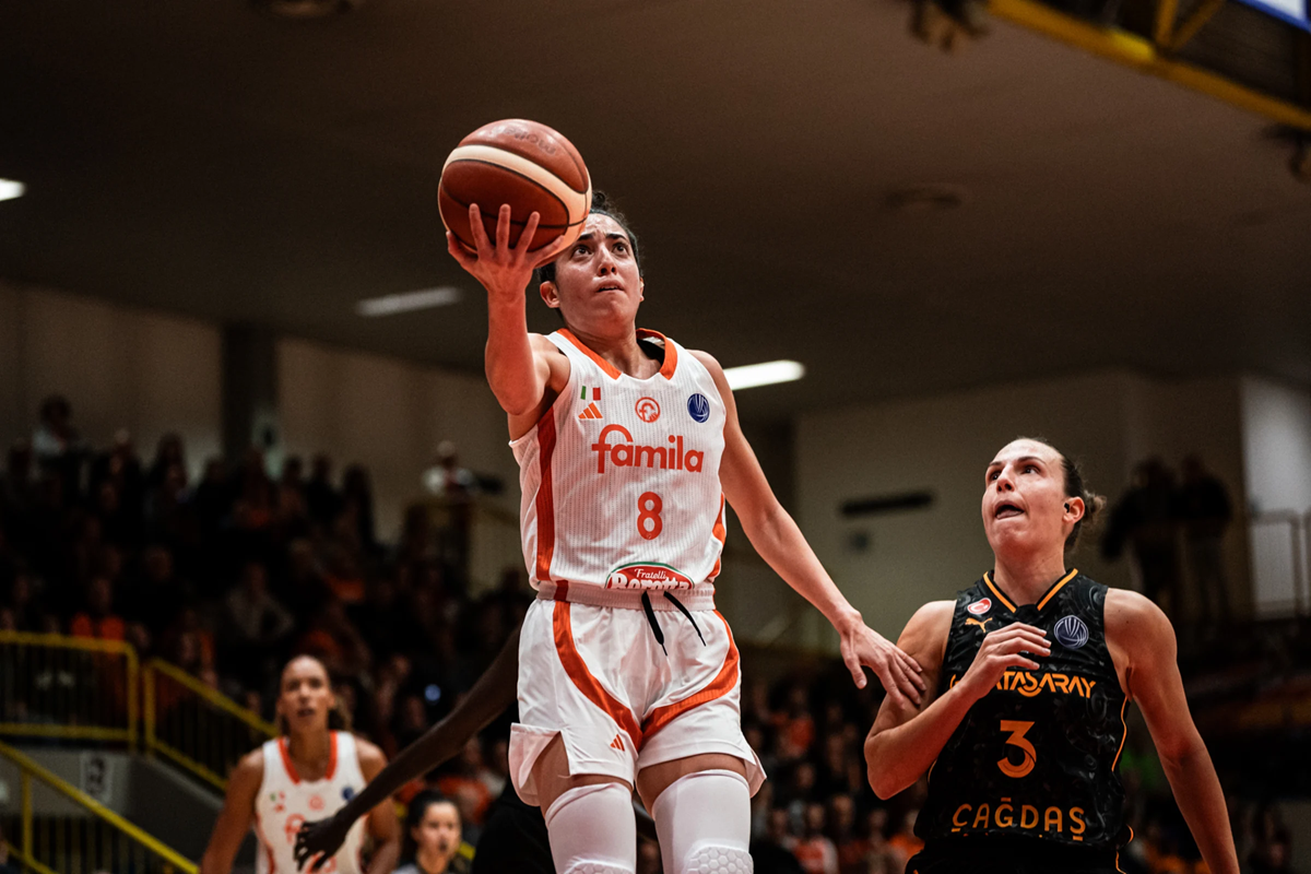Quattro punti di Shepard prima e quattro di Badiane poi permettono al Beretta di restare in scia ad un Galatasaray molto sul pezzo che, con Kuier, Juhasz e Smalls, si porta addirittura sul +7. Appena entrate dalla panchina Laksa e Sottana impattano subito, con la capitana a segnare la prima tripla orange della serata: 13-17 alla prima sirena. Positivo il rientro in campo di Schio perché si sbloccano Conde e Zandalasini con una deliziosa tripla in stepback per il meno uno. Purtroppo il Famila – pur difendendo bene – non approfitta del buon momento per mettere la freccia e anzi inizia a perdere tanti, troppi palloni. Si segna pochissimo e così i due canestri di Kuier (22-26) inducono coach LaPena al timeout. Solo Zandalasini riesce a mettere altri due punti a referto ma si va alla pausa lunga sul 24-30. Splendido l’inizio di terzo quarto delle orange: prima Conde, poi Shepard ed infine Verona con i primi punti della gara firmano il sorpasso sul 33-30 dopo 4 minuti nei quali Galatasaray rimane a secco grazie anche ad una grande difesa scledense. Il time out ospite però stravolge tutto perché porta ad uno 0-11 firmato Smalls, Erdogan e Kuier dall’arco. Il Beretta torna a segnare con Steinberga e Laksa ma continua a rincorrere alla penultima sirena nonostante la tripla di Kuier arrivata appena fuori tempo massimo: 41-45. Williams apre l’ultima frazione con 3 punti e poi, dopo tante conclusioni a vuoto, Laksa finalmente riesce a segnare dall’arco anche se subito dopo arriva la risposta di Fitki di tabella. La gara ora diventa punto a punto con continui botta e risposta che però permettono a Galatasaray di rimanere sempre avanti. Anche perché le ospiti smorzano sul nascere ogni velleità orange come la tripla di Verona subito rispedita al mittente da Kuier. E poi i colpi del ko arrivano negli ultimi due minuti da Juhasz e Smalls: 61-72 il risultato finale.