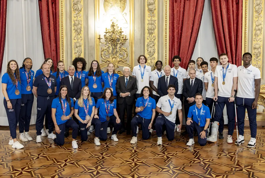 La Nazionale Femminile bronzo a EuroBasket 2025 e la Nazionale Under 20 Maschile che ha vinto la Medaglia d’Oro al Campionato Europeo di categoria, sono state ricevuti oggi al Quirinale dal Presidente della Repubblica Sergio Mattarella. A guidare la delegazione Azzurra il presidente della FIP Giovanni Petrucci, il presidente del CONI Luciano Buonfiglio e il Ministro per lo Sport e i Giovani Andrea Abodi.