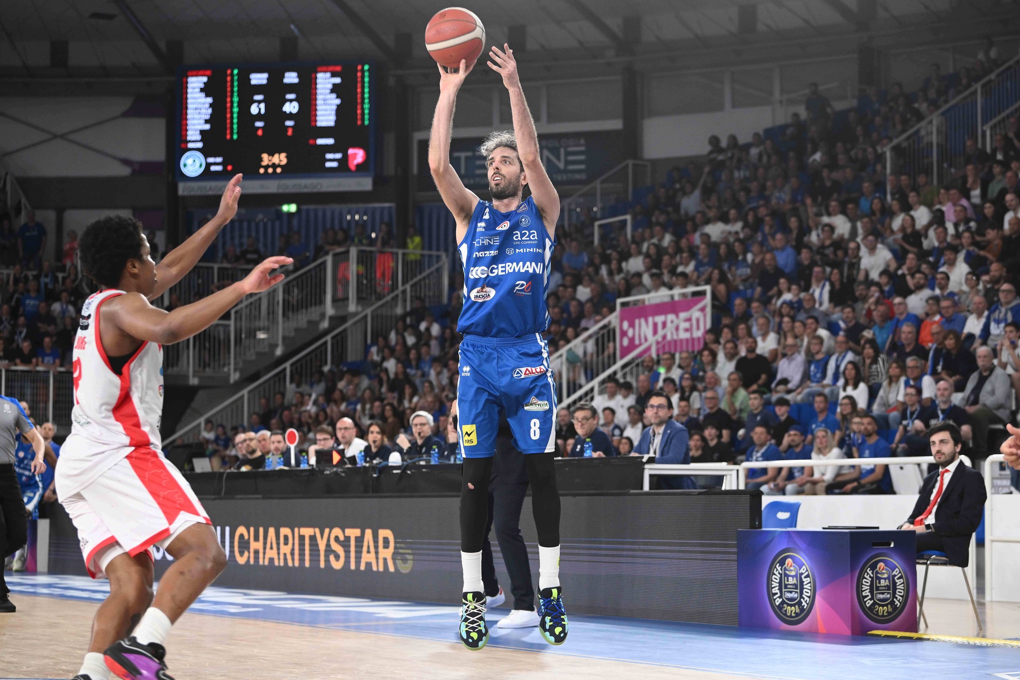 Germani Brescia: Bilan 25; Ferrero; Dowe 8; Della Valle 24; Ndour 13; Burnell 12; Tonelli; Ivanovic 8; Mobio 2; Rivers 22; Cournooh 4; Pollini Coach: Poeta
