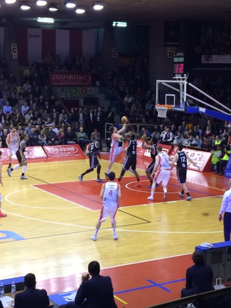 Mossa azzeccatissima: in post basso il lituano riempe di falli Reddic e White segnando in sottomano il 39-27 grazie ad un vero capolavoro no-look di Mussini.