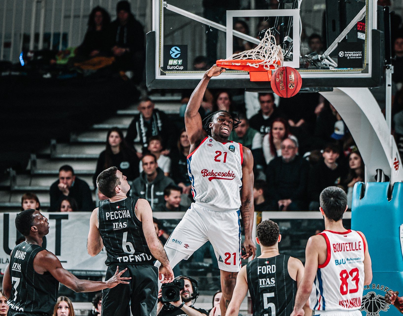 Trento ha lottato con tutte le risorse a sua disposizione, anche se, probabilmente, le rotazioni corte hanno costretto alcuni elementi chiave a rimanere in campo più del solito, arrivando nel finale con il fiato corto, e non riuscendo ad ammazzare la partita nei momenti in cui l’inerzia sembrava essere dalla loro parte. Da sottolineare, inoltre, la statistica che riguarda i tiri liberi: L’Aquila ne ha tirati appena 9, mentre il Bahcesehir è andato in lunetta la bellezza di 22 volte; in una partita decisa punto a punto, questo dato fa’ tutta la differenza del mondo.