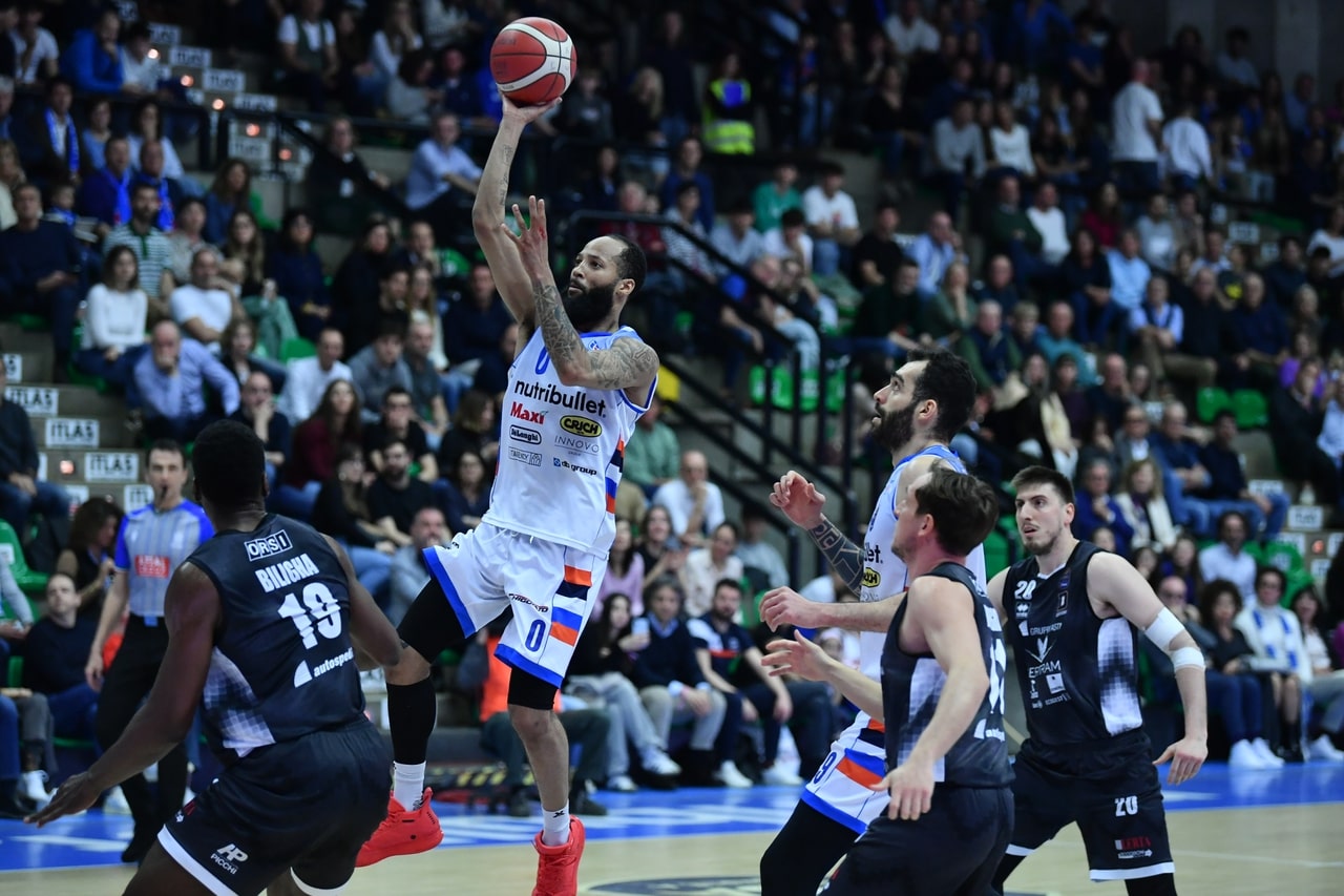 Gli uomini di coach De Raffaele lasciano troppo campo a una squadra emotiva e di flusso come la Nutribullet e appaiono sorpresi dal ritmo offensivo trevigiano. Troppi errori al tiro interno guadagnati, spesso, peraltro, con un ottimo lavoro sotto le plance (15/34) e conseguente affidamento a un tiro pesante che, però, paga i dividendi solo nell’inerzia di un tratto conclusivo di gara trainante. A livello realizzativo sono quattro gli uomini in doppia cifra per gli ospiti, tra i quali spicca la coppia Vital–Baldasso da 16 punti cadauno. In casa biancoblu è, invece, sontuosa la prova di Ky Bowman, come racconta un tabellino da incorniciare fatto di 31 punti, 4 rimbalzi e 6 assist, compresa la tripla decisiva per il successo dei suoi. Olisevicius torna al bottino e alla solidità di inizio stagione (25 punti, 6 rimbalzi e 5 assist). Al lituano si aggiunge, infine, la miglior prova in canotta trevigiana di Francesco Pellegrino (8 punti con 4/5 da due).