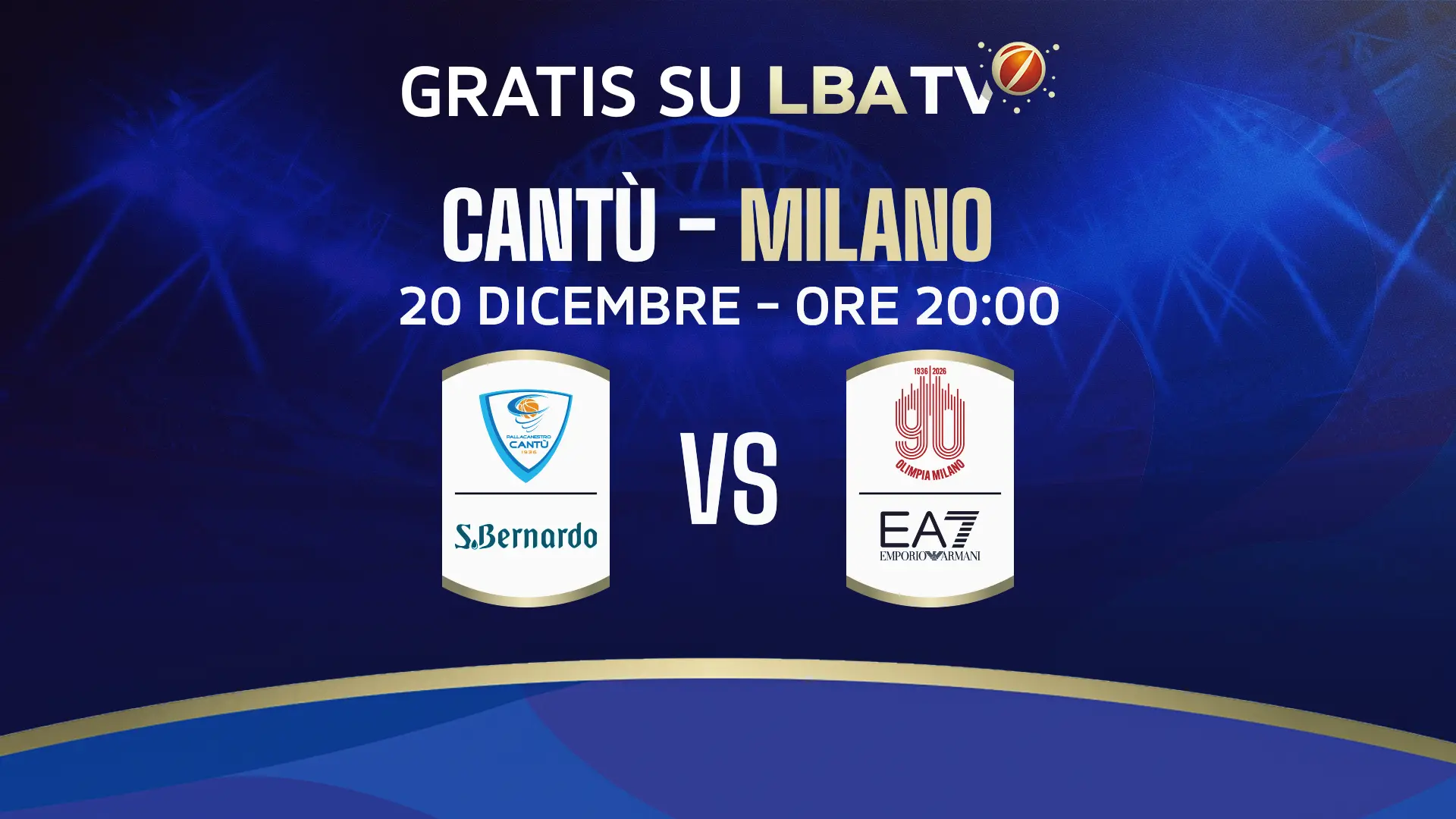 La partita tra Acqua S.Bernardo Cantù e EA7 Emporio Armani Milano, in programma sabato 20 dicembre 2025 alle ore 20.00, sarà disponibile gratuitamente (previa registrazione) su LBATV.
