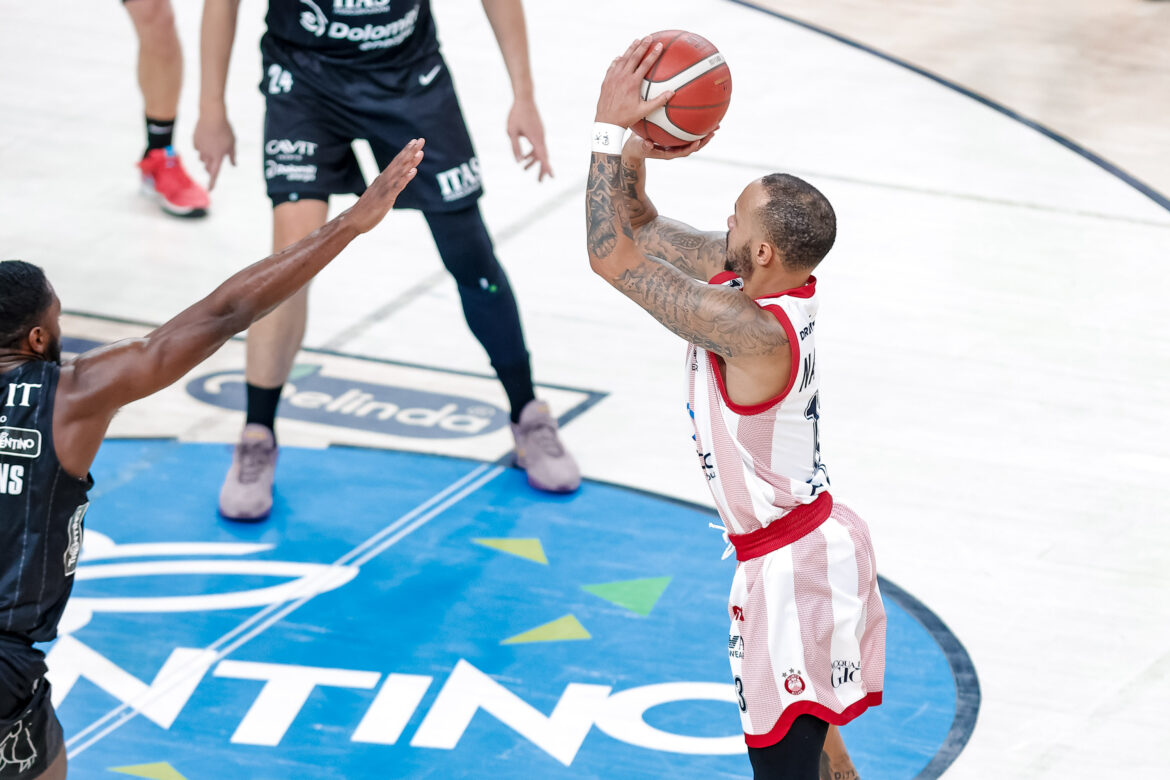 Vince Milano nonostante un primo quarto totalmente a tinte bianconere. Trento parte fortissima andando subito in doppia cifra di vantaggio e mantenendo tale distacco per l’intero primo periodo. La squadra di Messina però, nonostante tanta stanchezza causata dal doppio turno europeo, non molla e rientra nel secondo parziale, andando in vantaggio poi nella ripresa. Da qui il match andrà parecchio avanti di parziali e contro parziali con i biancorossi che ne escono vincitori grazie ai suoi campioni e ad un’ottima difesa.