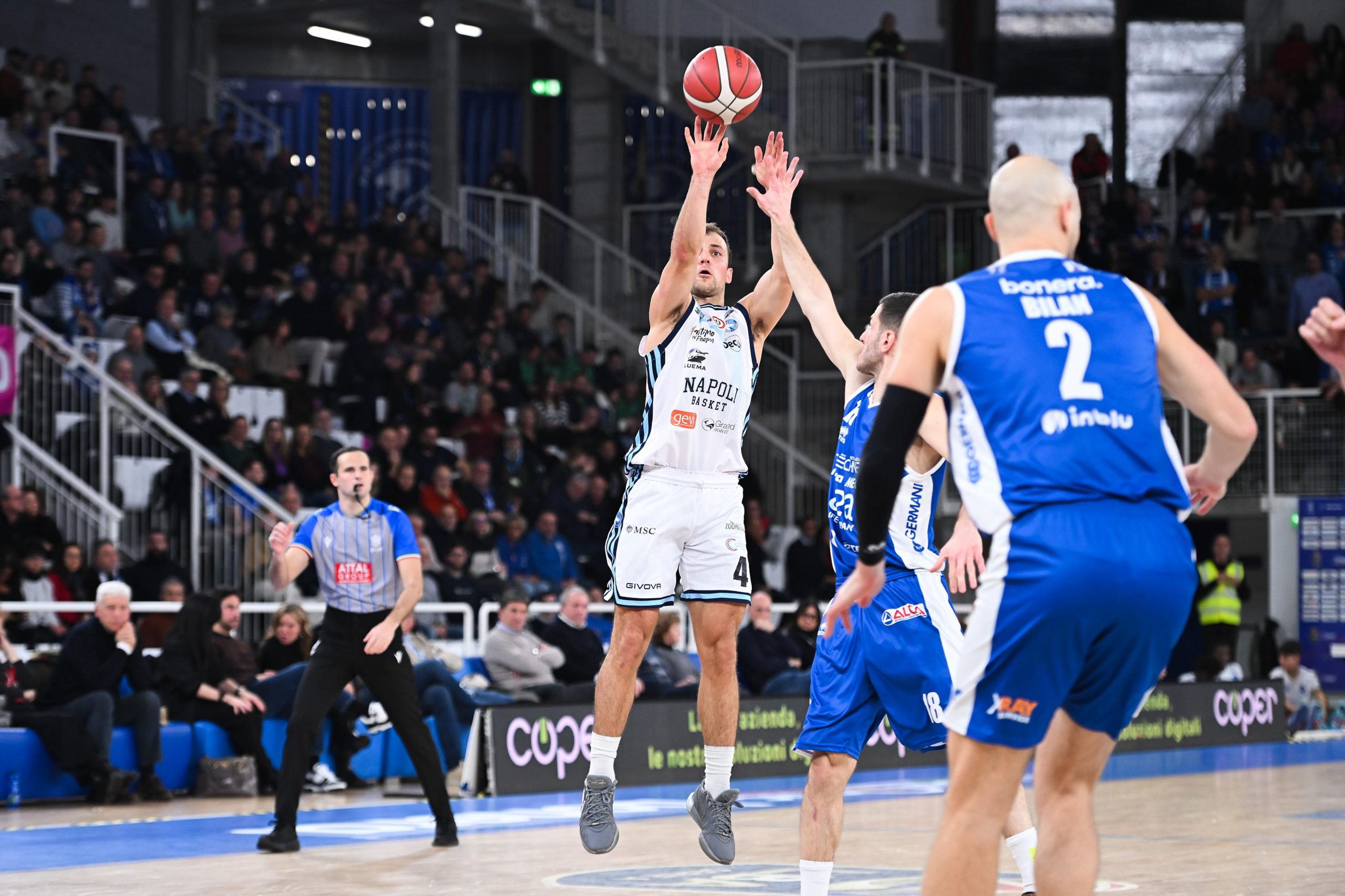 Gli azzurri chiudono la prima frazione sotto di 10 lunghezze, per poi ridurre il gap prima dell’intervallo. Si torna negli spogliatoi a distanza di soli 2 possessi (50-44). Ma nel terzo quarto i padroni di casa riallungano, chiudendo sul + 11, e amministrano il vantaggio nell’ultimo periodo, quando una Napoli orfana di Totè (fuori per 5 falli), non ha più la forza di provare a rimontare.