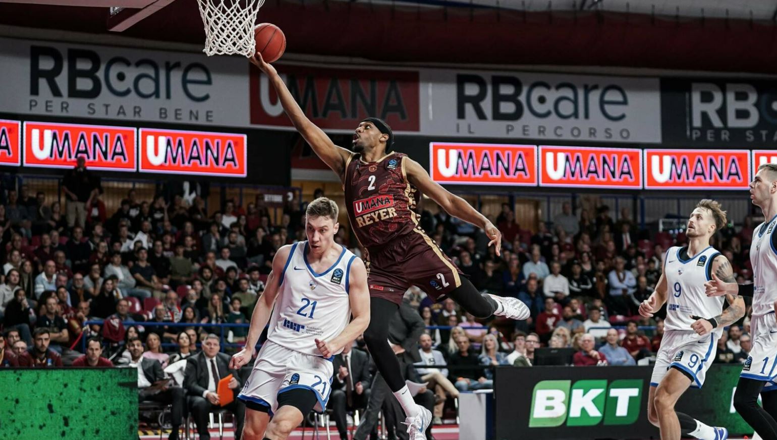 La Reyer nei primi 20′ di gioco fa 20/23 da due, conduce la battaglia a rimbalzo per 21 a 16, colleziona 16 assist e manda a referto 9 dei 12 giocatori a disposizione (in quel momento ne erano scesi in campo 10). Numeri che possono anche quasi far dimenticare l’1/11 dalla lunga distanza, arma che sta faticando a funzionare in Europa, e i problemi a rimbalzo (7 quelli offensivi concessi all’intervallo lungo). Oltre ovviamente alle immancabili palle perse, 6 a metà partita e 15 a fine match.
