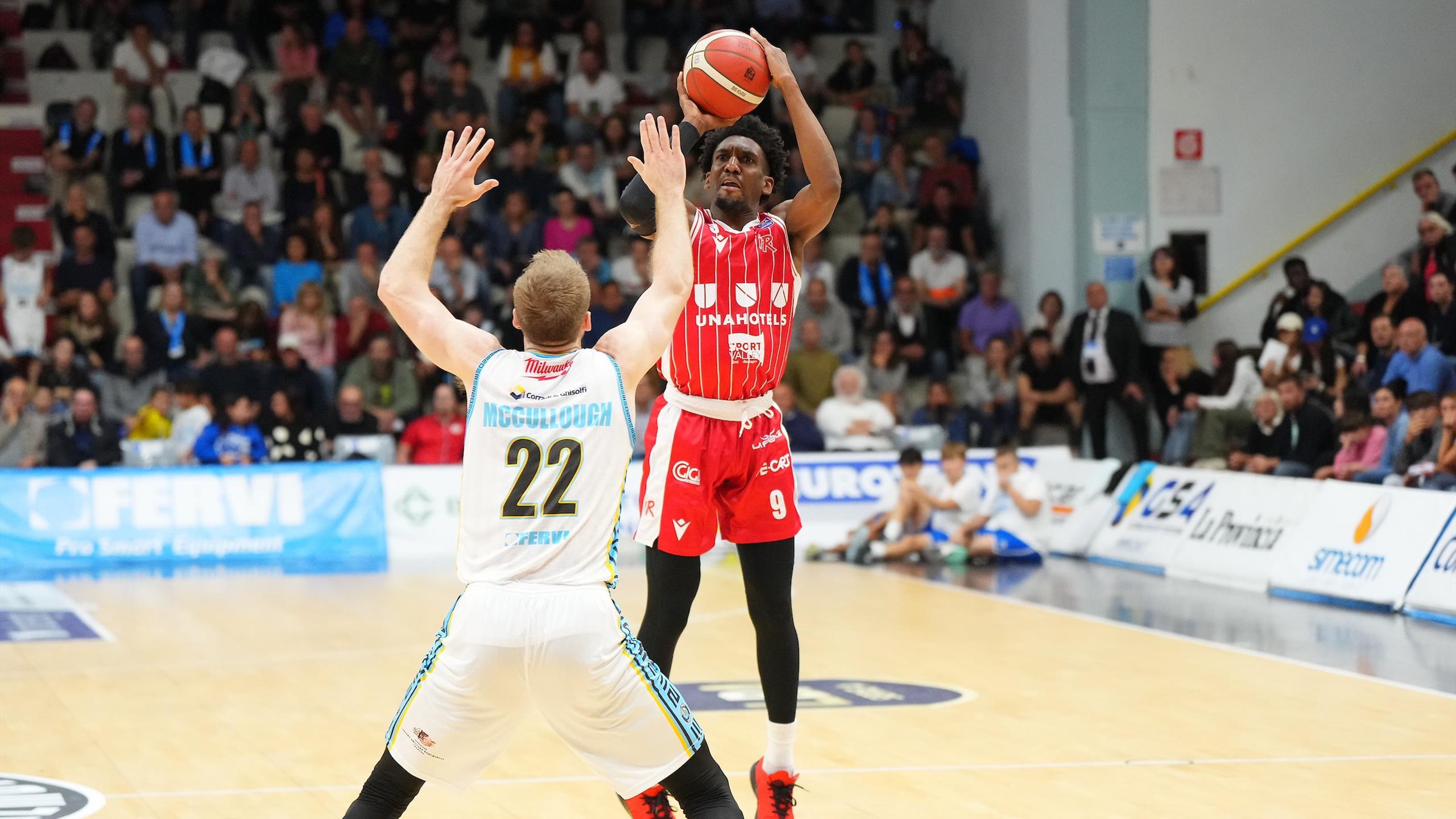 UNAHotels Reggio Emilia: Weber 8, Galloway 24, Faye 5, Smith 12, Uglietti, Atkins 14, Black 3, Vitali 2, Grant 2, Chillo 7, Cipolla N.E., Bonaretti N.E. Coach: Priftis