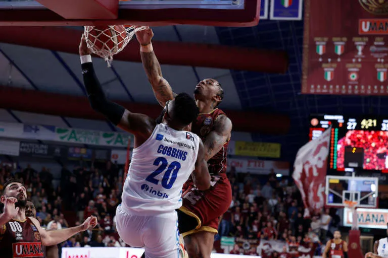 Nel secondo quarto della partita al Taliercio, col punteggio di 35-27 per Brescia, Tucker è arrivato per primo sul pallone vagante rimesso in gioco proprio da Cobbins, che aveva catturato il rimbalzo in difesa sull’errore da tre di Jordan Parks ma stava per cadere fuori dal campo. L’ex guardia degli Utah Jazz nella NBA ha trovato la strada libera verso il canestro, Cobbins ha fatto appena in tempo a offrirsi “in sacrificio” suo malgrado ed è stato travolto dalla potenza della schiacciata di Tucker, sempre più impressionante a ogni replay.