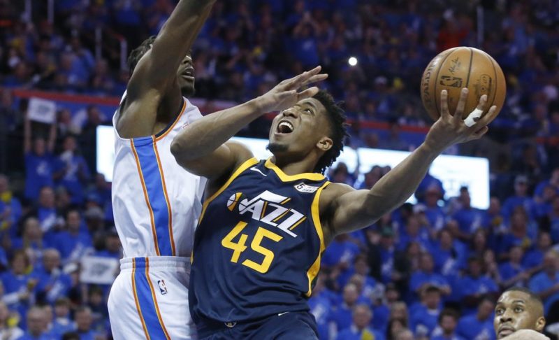 Subito dopo la sirena finale del match di game-5 disputata alla Chasepeake Energy Arena e terminata con il punteggio di 107-99 in favore dei Thunder, il rookie dei Jazz Donovan Mitchell provoca così i fan dei Thunder al termine del match.