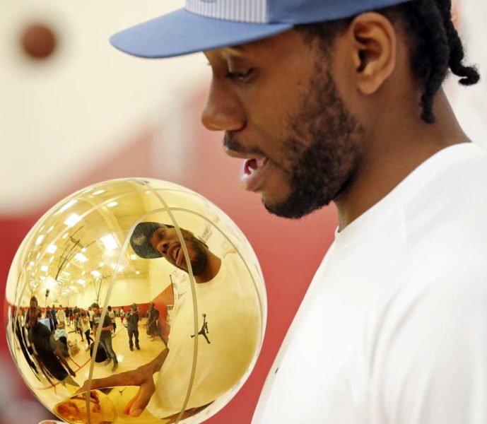 Kawhi Leonard con il Larry O’Brien Trophy