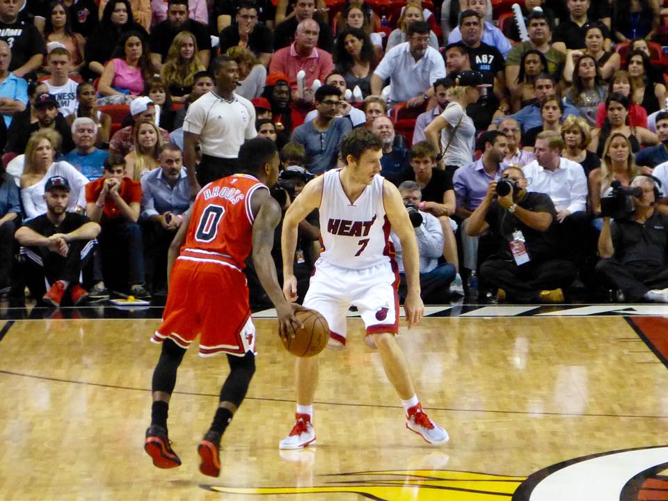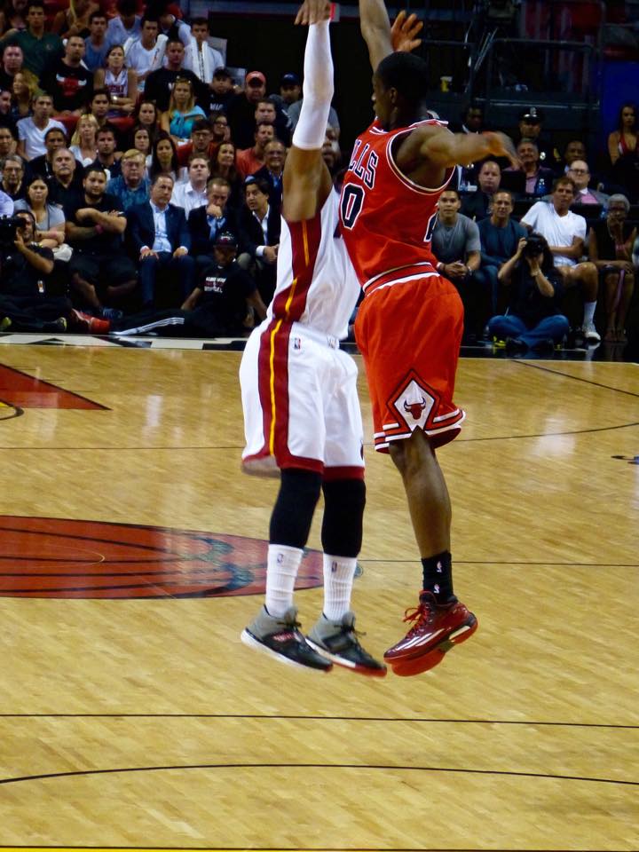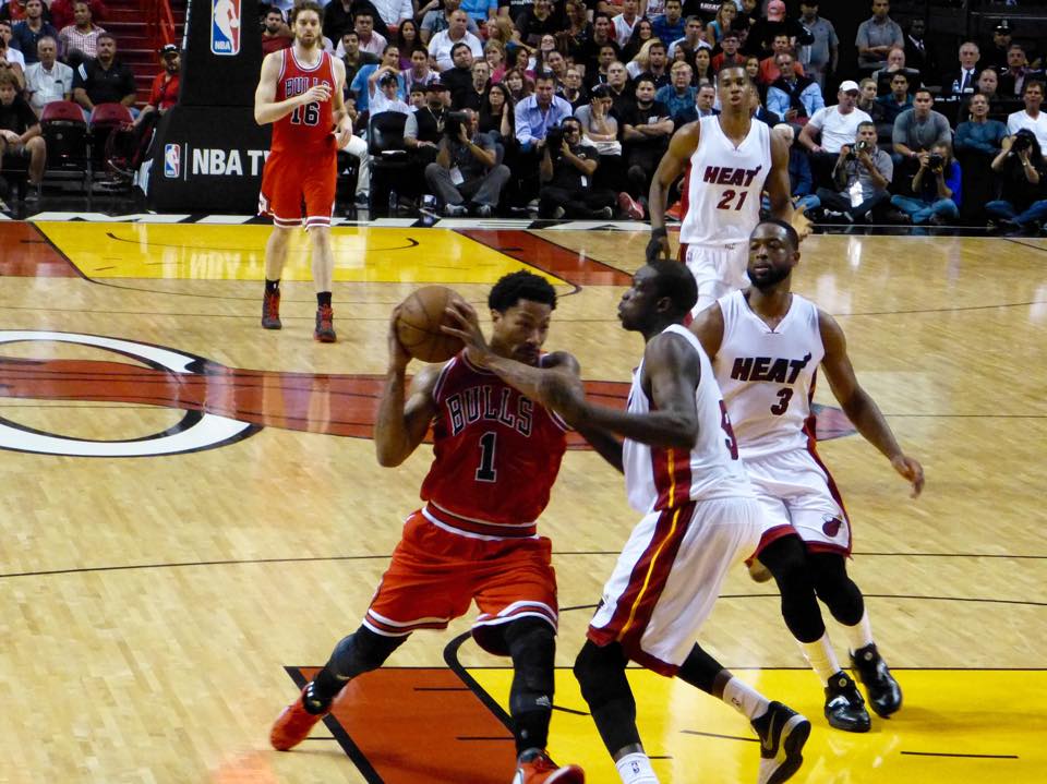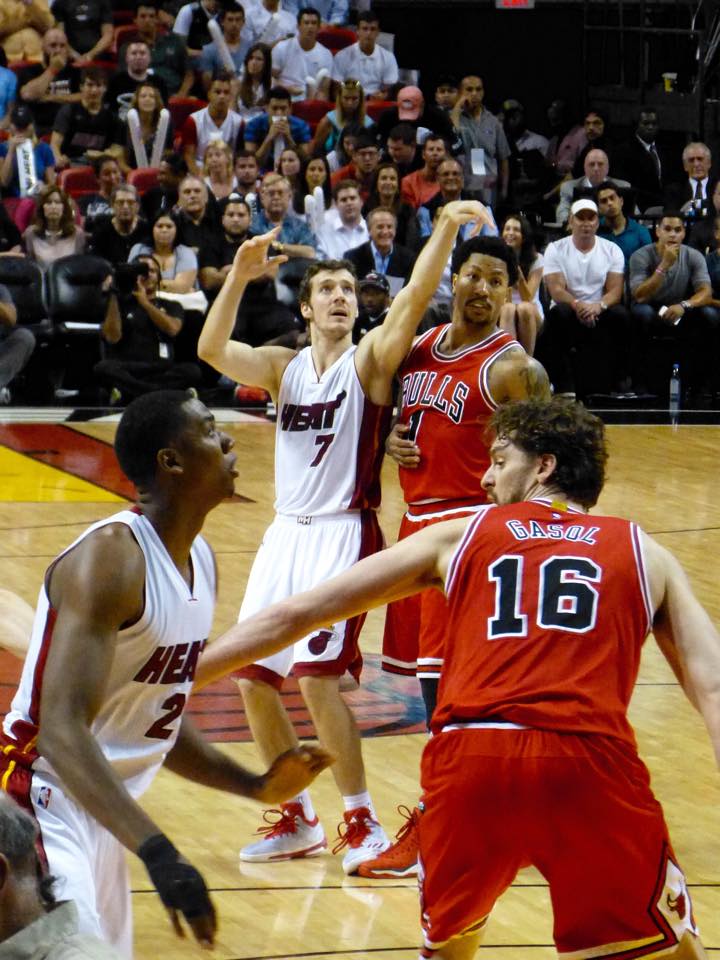 Le migliori foto da bordocampo della sfida tra Miami Heat e Chicago Bulls, chiusa con la vittoria di Rose e compagni in Florida.