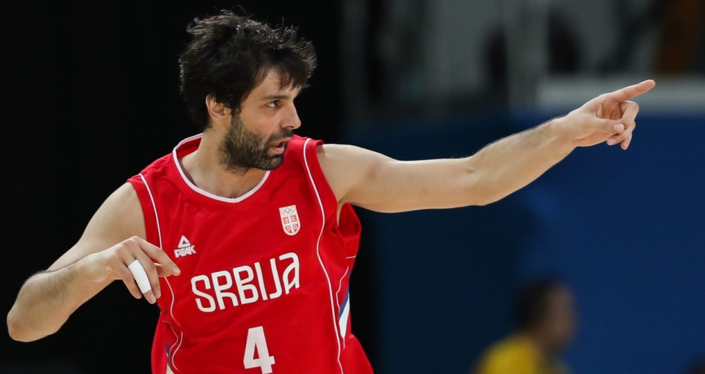 Milos Teodosic in azione con la canotta della Serbia