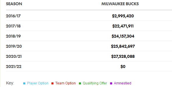 I Milwaukee Bucks pagheranno 103 milioni in 5 anni per assicurarsi le prestazioni di Giannis Antetokounmpo. Il 2016-17 è l’ultimo anno con il contratto da rookie, poi inizierà il contratto già siglato in estate. Le prestazioni del greco sono sotto gli occhi di tutti, è migliorato e sta migliorando a vista d’occhio, è in quintetto all’all star game e il futuro è tutto dalla sua. Avere un fenomeno di quel livello non maxato, è davvero un ottimo affare per i Bucks, che potranno così spendere dei soldi risparmiati per trattenere giocatori in roster o prenderne di nuovi.