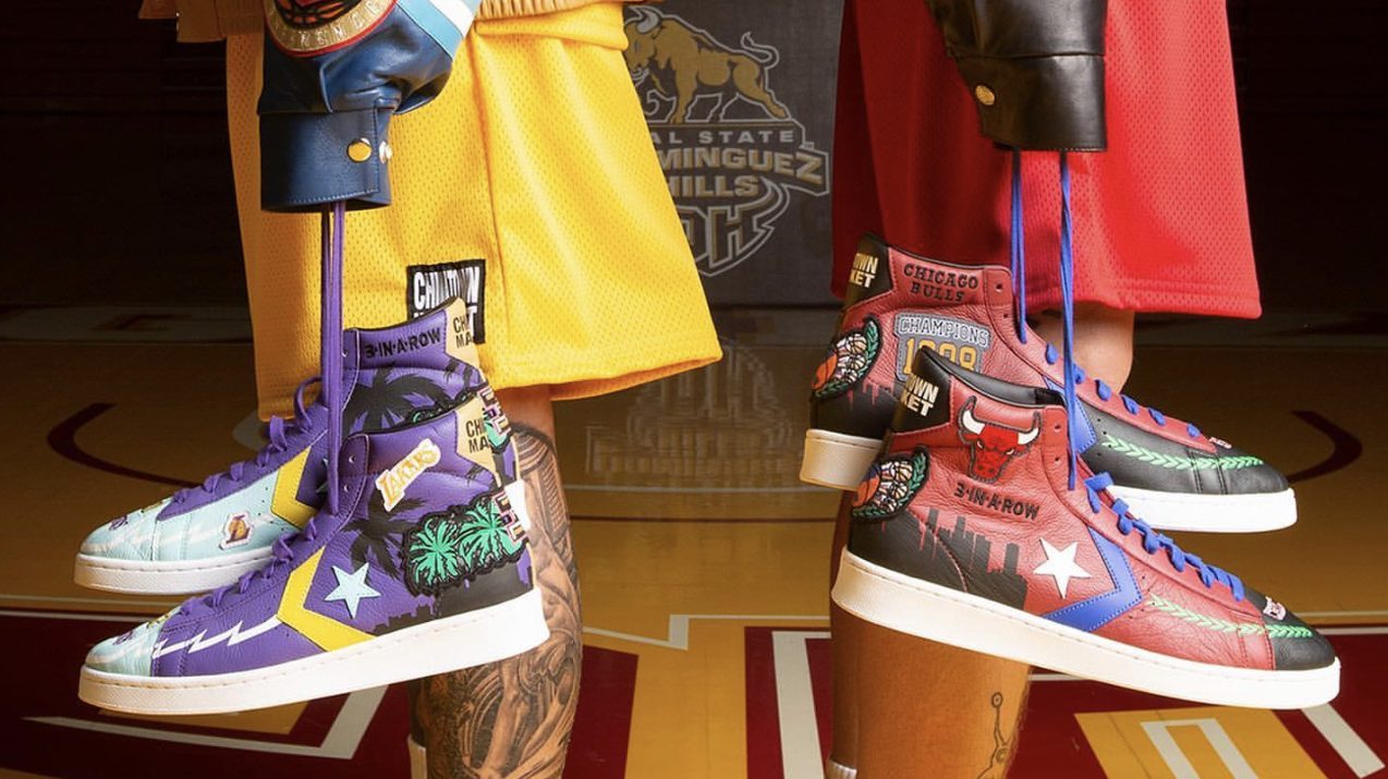 Per onorare questa eredità, Converse ha collaborato con il marchio di cultura streetwear Chinatown Market per re-immaginare due delle sneakers più amate dell’azienda, con i design delle giacche che celebravano il titolo dei Chicago Bulls e dei Los Angeles Lakers.
