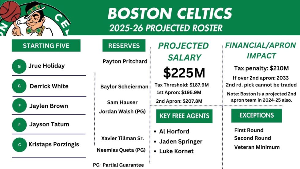 Il rinnovo di Sam Hauser a queste cifre porterà i Celtics ad avere un monte salari di 225 milioni dollari nella stagione 2025/26 e dovranno pagare 210 milioni di dollari di luxury tax, la più alta della Lega.