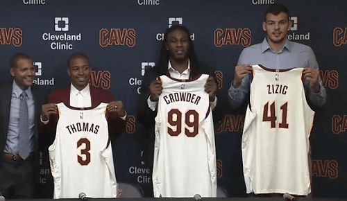 Thomas ha scelto il numero 3, mentre Crowder indosserà la maglia numero 99 e Zizic la 41. Il primo a parlare è stato Isaiah Thomas che ha dichiarato di voler tornare al 100% il prima possibile. “Voglio tornare presto, al 100%, lavoro sodo ogni giorno. Abbiamo un piano per farmi tornare al pieno della condizione. Sono eccitato, voglio vincere il titolo qui. La relazione con LeBron James? Mi ha scritto molte volte, è eccitato di cosa possiamo portare a Cleveland, io sono eccitato allo stesso modo di poter giocare con il miglior giocatore al mondo. Giocare con lui, con Kevin Love, con Derrick Rose, JR Smith, mi rende molto eccitato, non aspetto altro che tornare in campo. I Celtics? Io e Crowder abbiamo lottato a Boston, nonostante tutto quello che la gente pensasse o dicesse di noi.” Gli fa da eco anche Crowder: “Ringrazio Boston per tutto quello che ha fatto per me, ora sono qui, sono felice”.