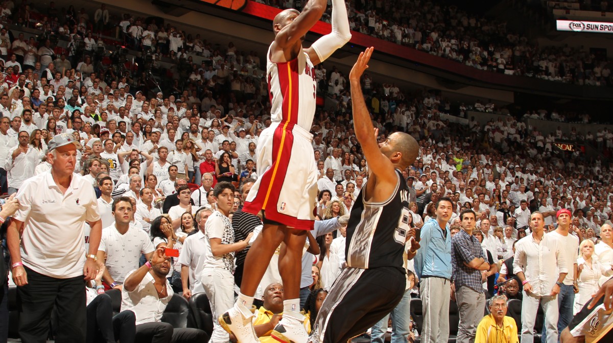 Non è stato un buzzer beater e neppure un game-winner ma è stato definito da molti il tiro del secolo. Gara-6 delle Finals, si gioca a Miami. Con gli Spurs ormai saldamente al comando a pochi minuti dalla fine, il pubblico dell’AAArena abbandona il palazzetto ma qualcosa gli fa cambiare idea: gli Heat hanno iniziato la rimonta. Prima James per il -2, poi gli Spurs ai liberi con Leonard (1/2 decisivo) e poi… poi Allen che riceve da Bosh, fondamentale a rimbalzo in attacco, e, con i piedi sempre perfettamente allineati, mette la tripla del momentaneo pareggio: 95-95 e gara riaperta. Popovich non sa con chi prendersela, gli Spurs, affranti, non saranno poi capaci di riaprire la partita, perdendo le Finals in Gara-7; non sarà stato un buzzer beater ma è stato sicuramente il tiro più importante messo a segno negli ultimi 10 anni.