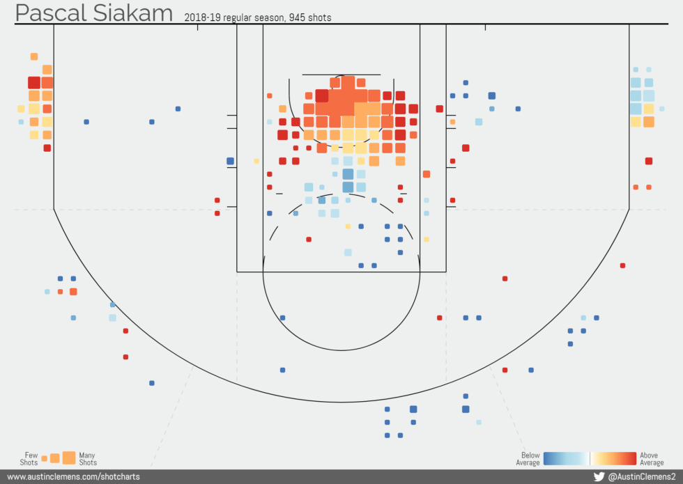 Come detto in precedenza, la crescita vista nella scorsa stagione da parte del camerunese Pascal Siakam può far dormire sogni tranquilli a Nick Nurse. Il numero 43 dei Raptors sta aggiungendo al suo play book il tiro dalla media e dalla lunga distanza. I miglioramenti dalla stagione 2017/18 a quella 2018/19 sono lampanti come dimostrano questi dati.