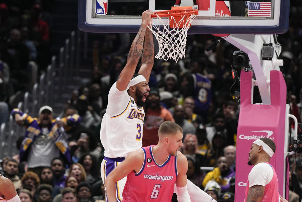 In 38 minuti, Davis ha giocato forse la sua miglior partita della sua carriera in maglia Lakers, sfiorando il suo career high di punti risalente al 2016, e il tutto dopo aver battuto 48 ore prima i Milwaukee Bucks con 44 punti. I gialloviola (10-12) hanno controllato la partita dal secondo quarto in poi, toccando anche il +29, mentre gli Wizards perdevano Bradley Beal dopo appena 3 minuti per un problema muscolare.