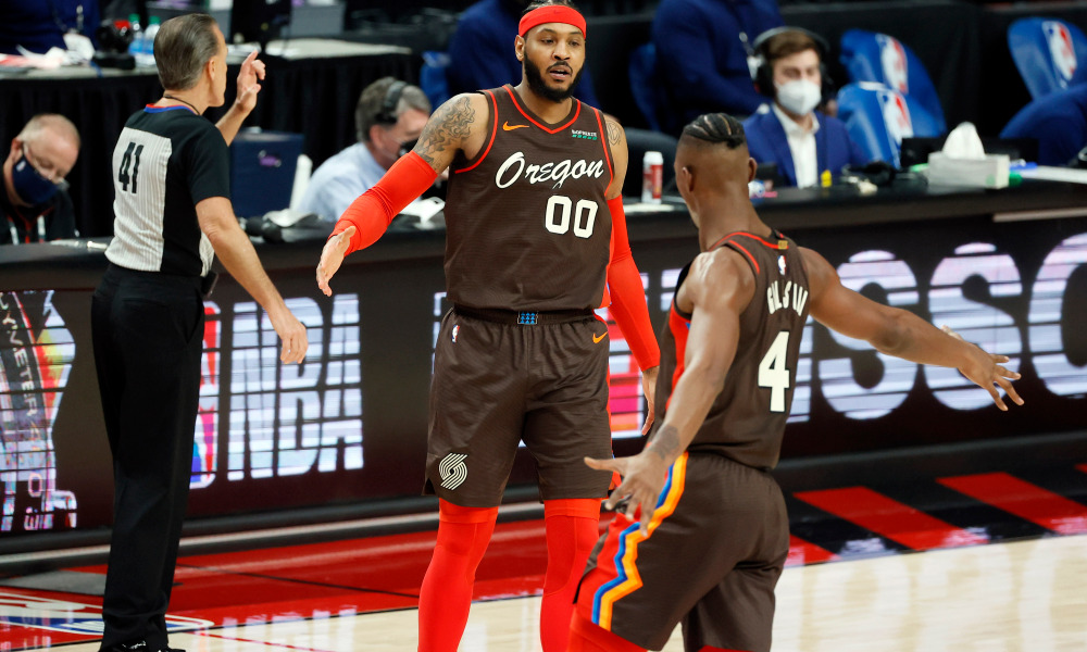 In una serata in cui Ben Simmons rende inpossibile la vita alla tua star, e sei senza CJ McCollum e Jusuf Nurkic, avere Carmelo Anthony dalla tua parte è una buona notizia.