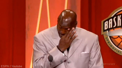 Quello di Michael Jordan è il discorso per eccellenza e passa alla storia, principalmente per due motivi: il primo è quel pianto sincero che dimostra che oltre a essere un campione, MJ è pure un uomo come tutti, il secondo (meno serio) è che su quel pianto è nato il famoso meme Crying Michael, che ha fatto il giro del mondo.