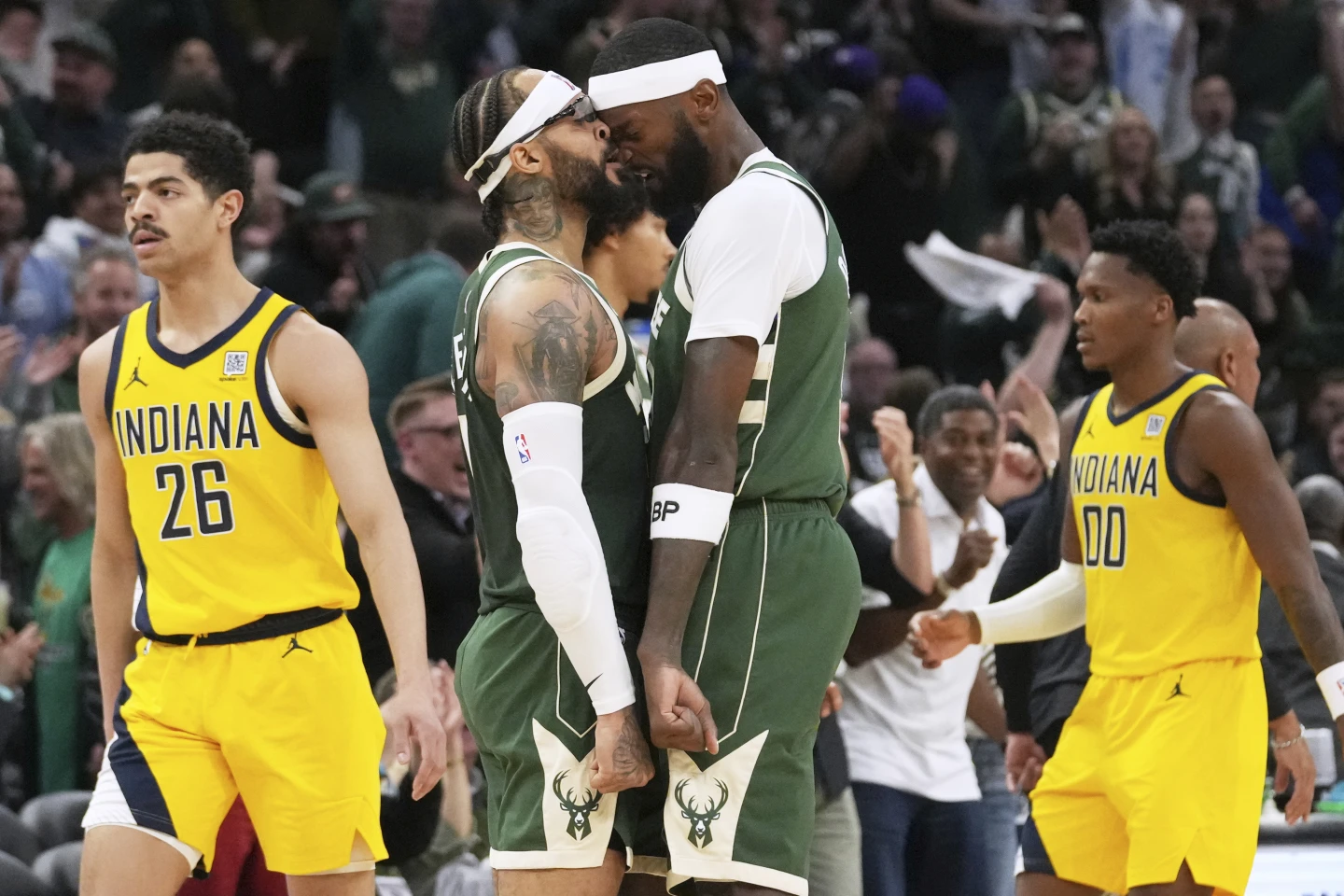 Coach Doc Rivers ha scelto di panchinare un Taurean Prince impalpabile nelle prime due partite della serie, per promuovere Trent Jr in quintetto base. E lui ha ripagato con una prova di alto livello anche in difesa, con lui i Bucks sono riusciti a difendere più aggressivi sui pick and roll di Haliburton passando meglio sui blocchi e mettendo più pressione. In trasferta le percentuali da fuori dei Pacers si sono abbassate, con Myles Turner, Bennedict Mathurin e Andrew Nembhard particolarmente imprecisi. Pascal Siakam ha segnato 28 punti in 31 minuti di gioco, per Tyrese Haliburton 14 punti e 10 assist ma anche un paio di “airball” da tre e una partita meno efficace rispetto al solito.