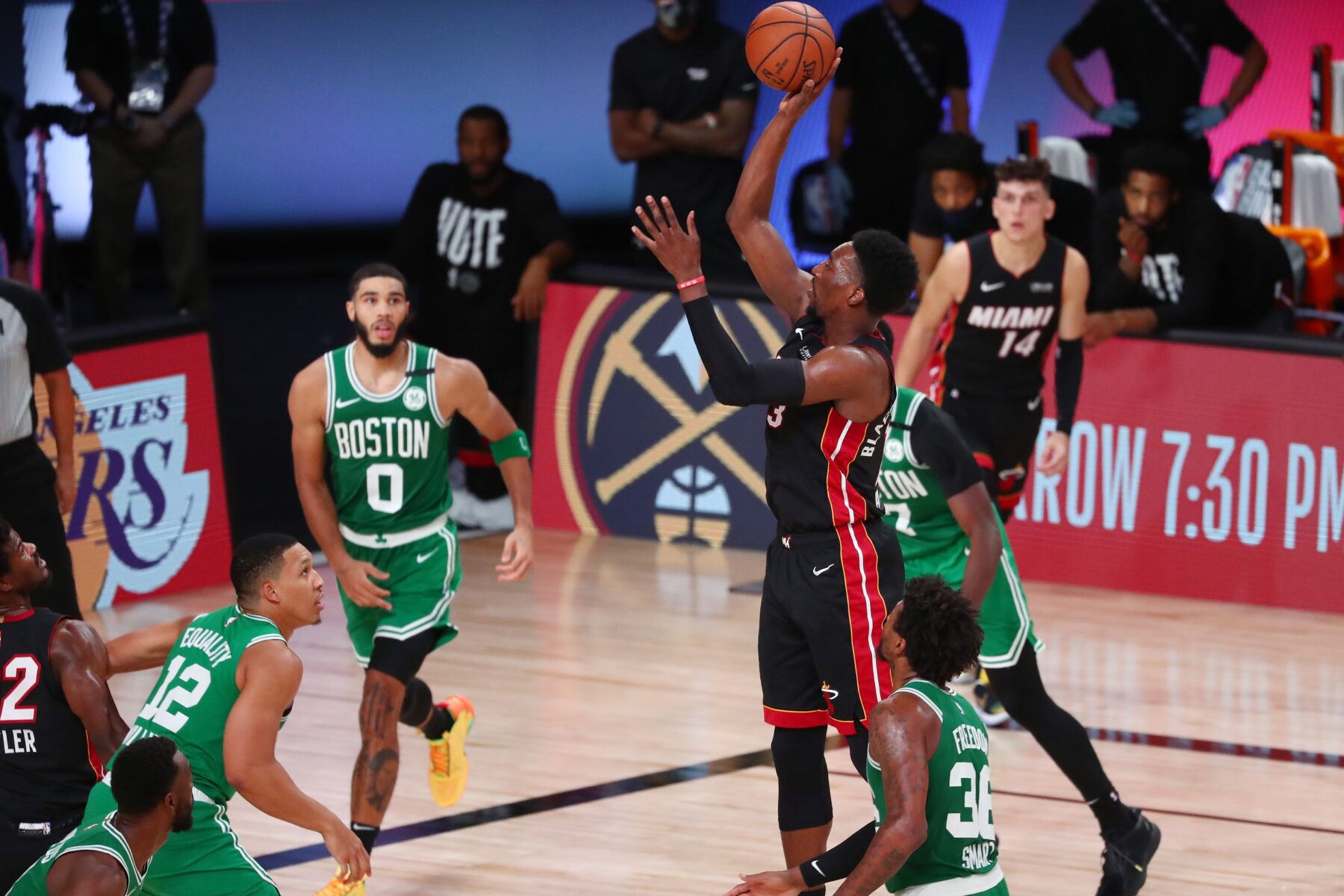 In questi playoffs Adebayo si è imposto come il miglior giocatore dei Miami Heat, assieme a Jimmy Butler. In 13 gare il prodotto di Kentucky sta viaggiando a 17.8 punti, 11.5 rimbalzi e 4.7 assist di media, in oltre 36 minuti di gioco. In gara 4 Adebayo ha chiuso con 20 punti, 12 rimbalzi e 4 assist, Miami ha vinto ne quarto periodo grazie soprattutto ai 37 punti, di cui 17 nel solo periodo finale, del rookie Tyler Herro.