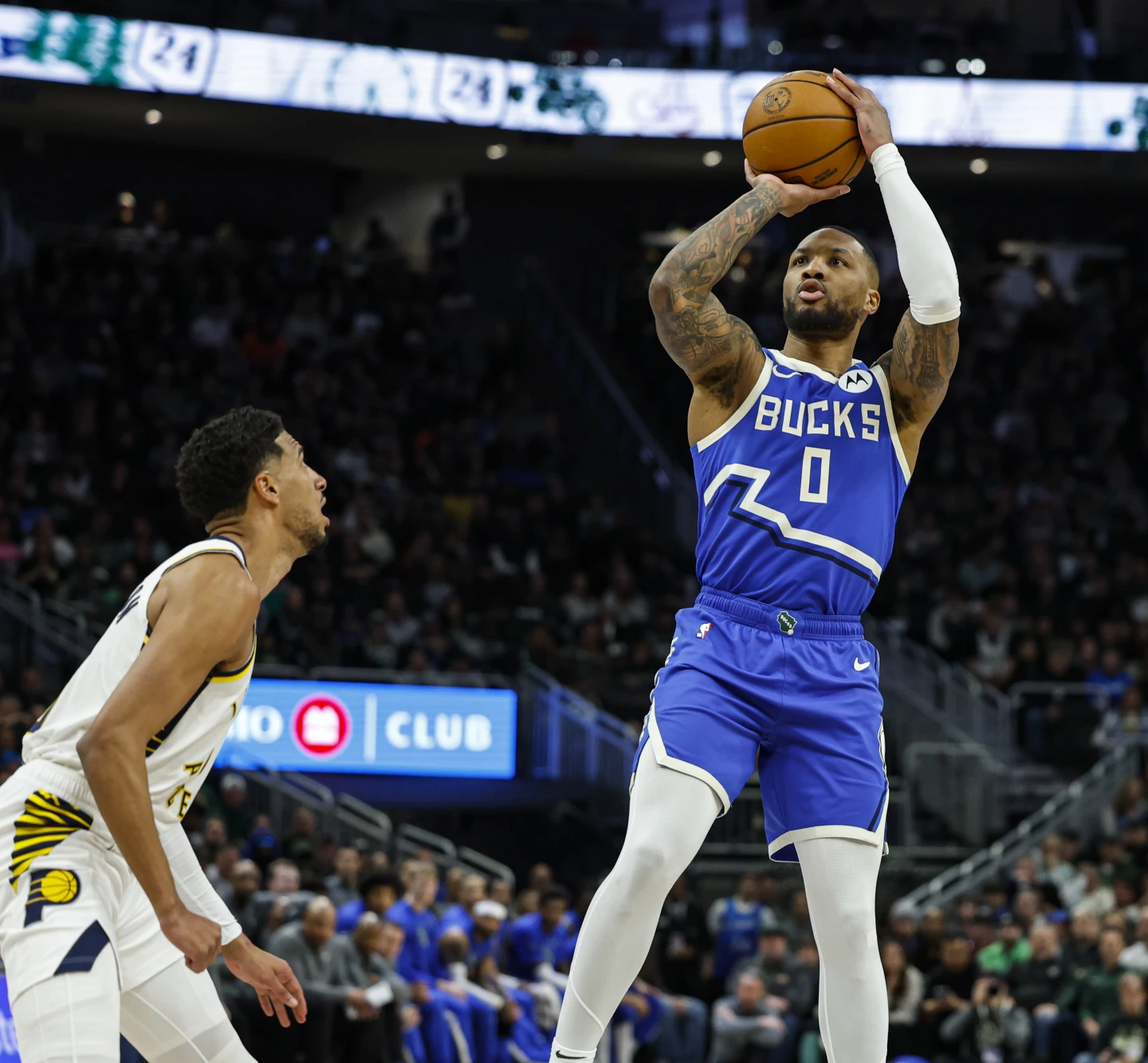 Per i Bucks (38-28) che ora hanno una vittoria piena di vantaggio su Indiana (37-29) e il vantaggio negli scontri diretti, 34 punti di Giannis Antetokounmpo con 10 rimbalzi e 7 assist ma anche 6 falli. Damian Lillard ha sfiorato la tripla doppia con 25 punti, 10 rimbalzi e 8 assist e dalla panchina 16 punti di Kevin Porter Jr. Per i Pacers, 24 punti con 15 assist senza palle perse per Tyrese Haliurton e career high da 30 punti per Aaron Nesmith, per Pascal Siakam 26 i punti finali.