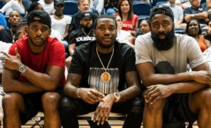 James Harden con Chris Paul e il rapper Meek Mill in occasione del JH-Town Weekend dello scorso anno.