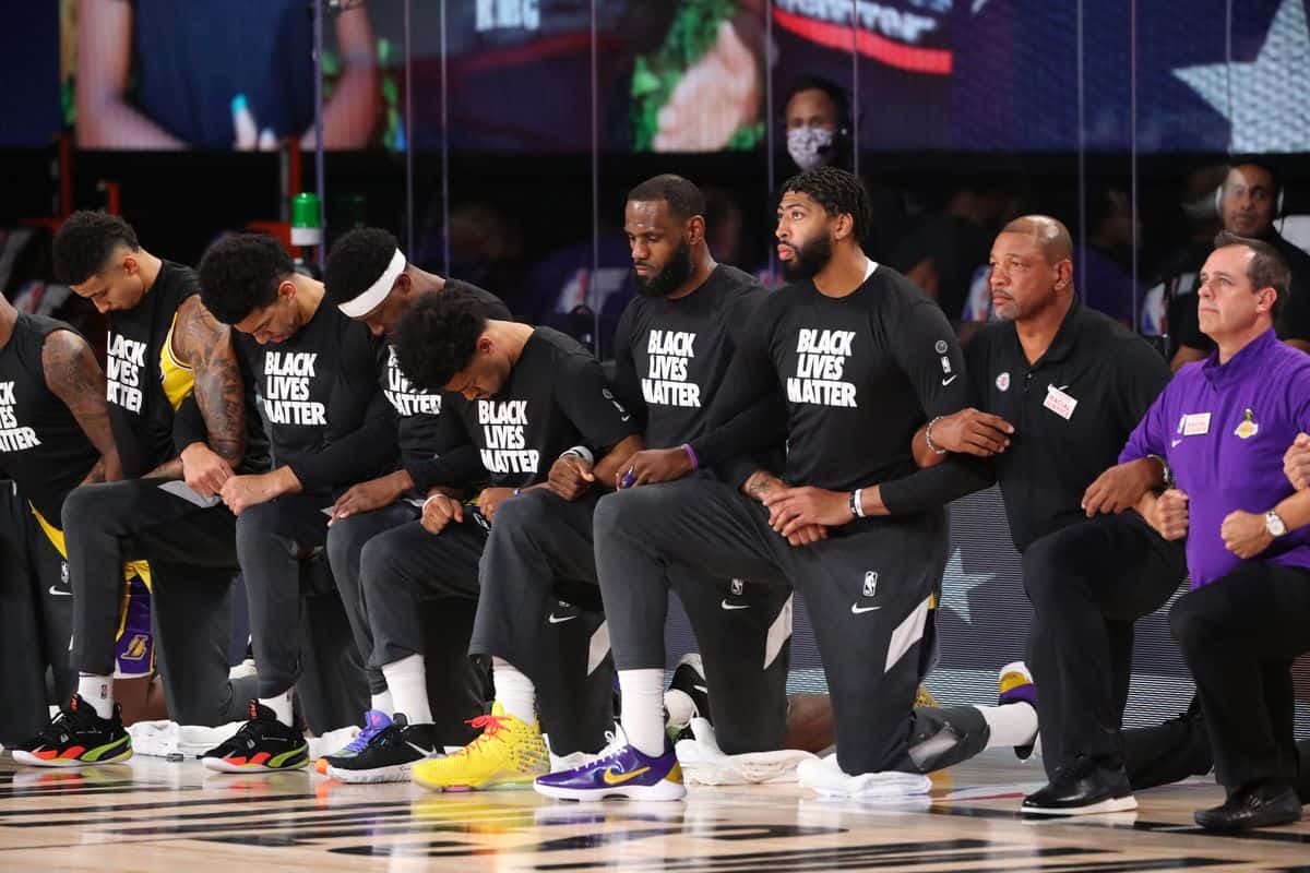 Se Lakers e Clippers hanno dato spettacolo in campo, il momento più importante del derby losangelino disputato nella notte è avvenuto al di fuori dei 48 minuti di gioco, durante l’inno nazionale. Giocatori, allenatori e arbitri hanno usato questo momento per inginocchiarsi, in segno di lotta alla discriminazione razziale che ancora oggi caratterizza fortemente gli Stati Uniti.