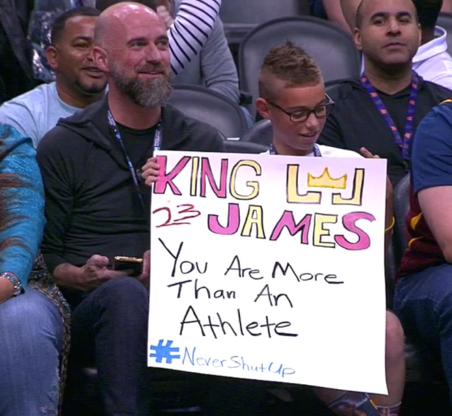 Lo stesso James dopo aver apprezzato lo slogan utilizzato, ha regalato al piccolo fan dei Cleveland Cavaliers la sua manica utilizzata nel corso del match contro i Suns.