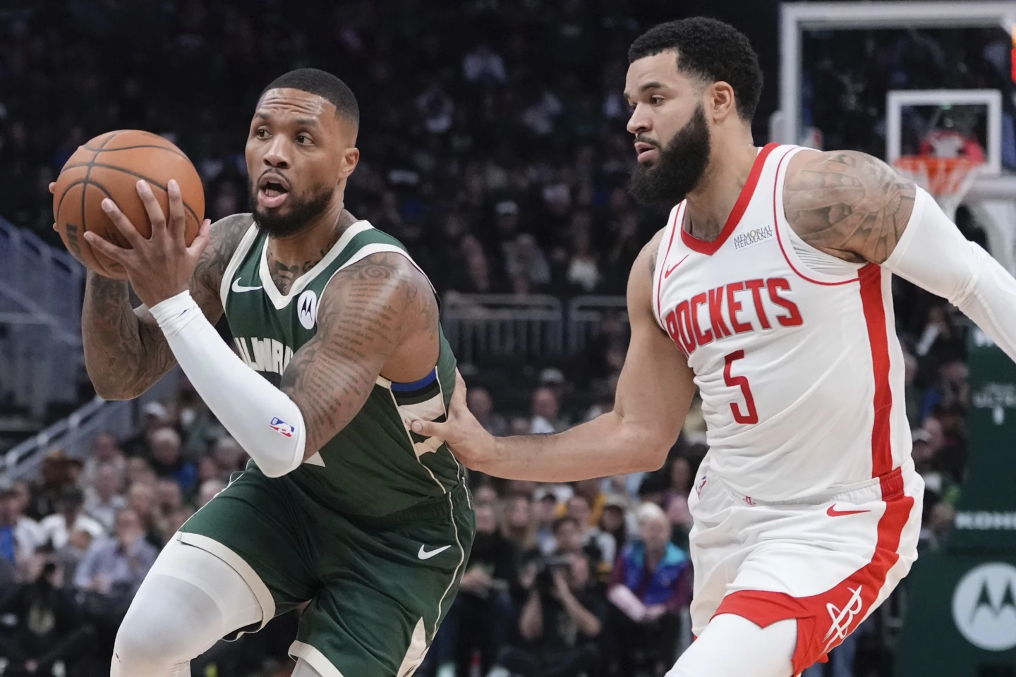 Al Fiserv Forum Milwaukee ha vinto per 101-100 con un layup vincente di Lillard, propiziato pochi secondi prima da una stoppata di Giannis Antetokounmpo ai danni di Alperen Sengun. I Bucks hanno rischiato di perdere una partita che conducevano per 71-57 a metà terzo quarto. Nel quarto periodo i Rockets hanno tentato il blitz, con la rimonta lanciata da Sengun e Fred vanVleet e a 1:58 dal termine erano avanti per 100-94. Lillard e AJ Green hanno quindi tagliato lo svantaggio, prima della sequenza finale.