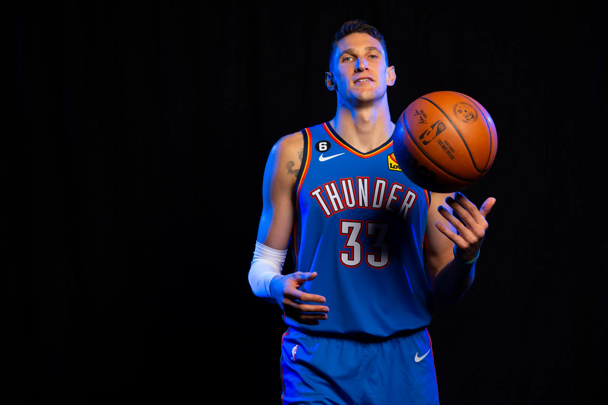 Per Muscala 548 partite NBA in carriera con 5.9 punti di media e il 37.3% da tre, la sua miglior stagione il 2020-21 proprio con OKC, a 9.7 punti di media.