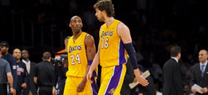 LOS ANGELES, CA – MAY 19: Kobe Bryant #24 of the Los Angeles Lakers speaks to teammate Pau Gasol #16 while playing against the Oklahoma City Thunder in Game Four of the Western Conference Semifinals during the 2012 NBA Playoffs at Staples Center on May 19, 2012 in Los Angeles, California.