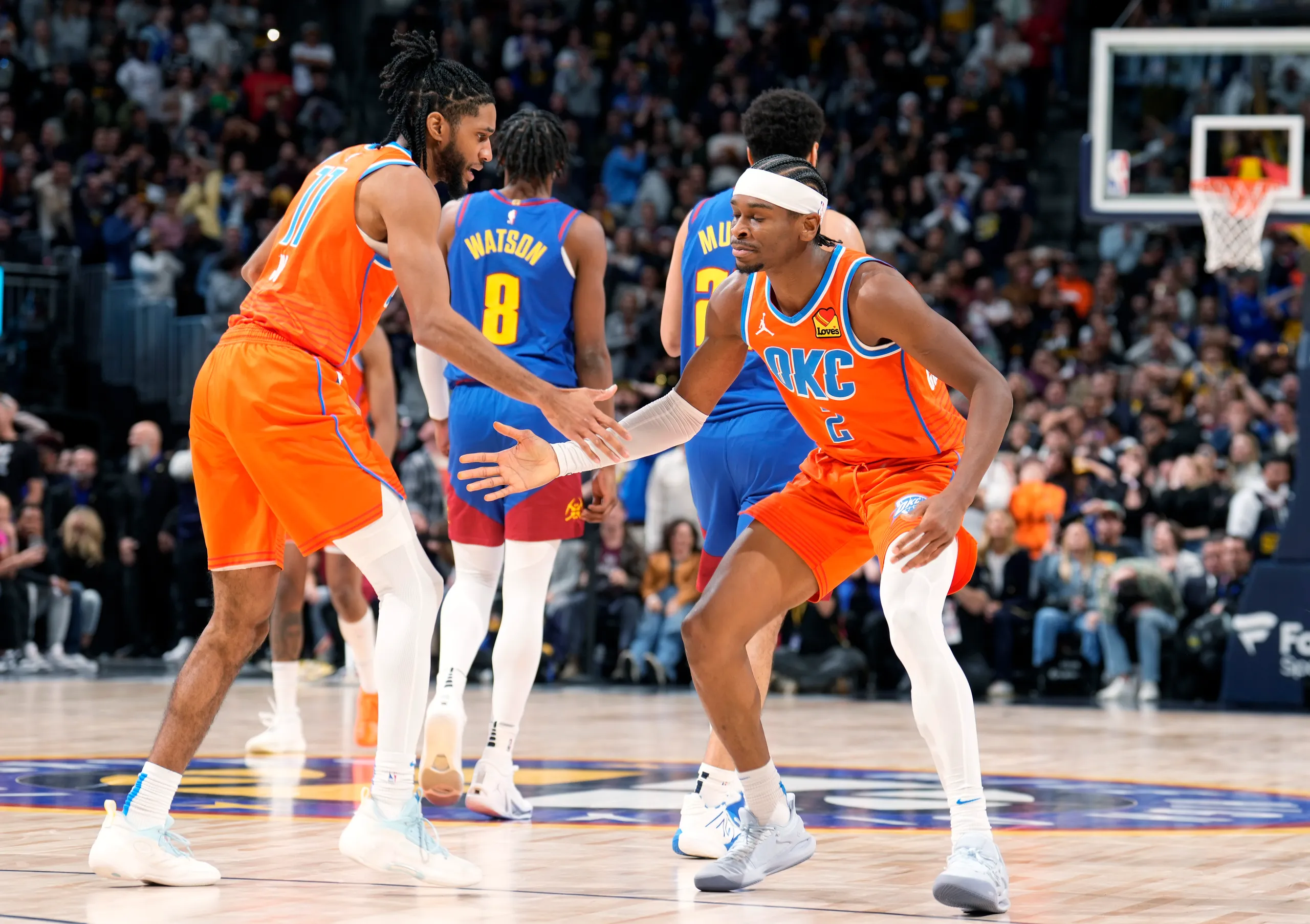 La partita della notte è stata senza dubbio quella tra Oklahoma City Thunder e Denver Nuggets, nella quale i Thunder si sono imposti sono nel finale. Protagonisti di questo successo sono stati il solito Shai Gilgeous-Alexander ed uno strabiliante Chet Holmgren. I due si sono divisi le luci della ribalta eccellendo ciascuno in una metà campo: SGA in attacco, segnando 25 punti, tra cui il tiro della vittoria ad un secondo dallo scadere, e Chet in difesa, sfiorando la tripla doppia con 9 stoppate. Vittoria che porta al secondo posto a Ovest i Thunder, con mezza partita di vantaggio su Dallas. A stupire molti al termine della partita è stata la compostezza e la freddezza di Shai, anche dopo aver segnato il canestro della vittoria. Ad accorgersene è stato anche lo stesso Holmgren, che ci ha scherzato nell’intervista post gara.