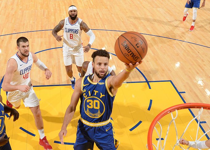 Curry piazza una prova da 38 punti, con 9 su 14 al tiro da tre e 11 assist in 36 minuti, in una serata in cui gli unici altri due giocatori in doppia cifra per gli Warriors sono Andrew Wiggins e Eric Paschall, ma in cui Golden State chiude con ben 20 triple di squadra a bersaglio e 64 punti nel solo secondo tempo. Una partita speculare rispetto ai Clippers, che avevano segnato 65 punti nella prima metà e toccato anche 21 punti di vantaggio nel terzo periodo.