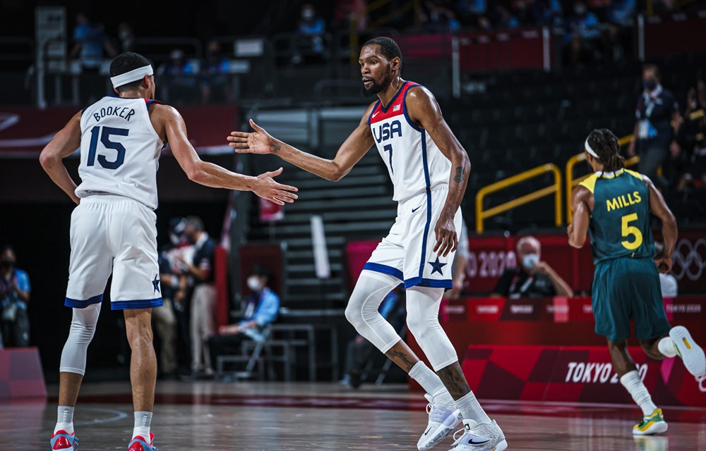 Gli Stati Uniti guidati da Kevin Durant concedono appena 33 punti all’Australia nel secondo tempo, soli 10 nel terzo quarto in cui Team USA ribalta la partita dal 45-42 Boomers con cui si erano chiusi i primi 20 minuti di gioco. KD è il top scorer di serata con 23 punti e 9 rimbalzi, Devin Booker gioca in semifinale la sua miglior partita del torneo con 20 punti.
