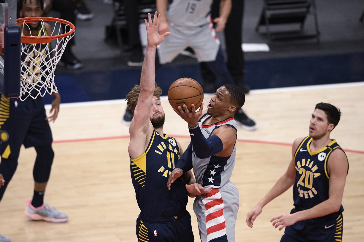 Contro i Pacers, Bradley Beal ha chiuso con 25 punti, 5 rimbalzi e 4 assist, Russell Westbrook ha sfiorato la tripla doppia con 18 punti, 15 assist e 8 rimbalzi, gli Wizards hanno chiuso con il 58% al tiro e segnato 48 punti nel terzo quarto (48-31 con 15 su 20 dal campo), quando hanno preso definitivamente possesso della partita.