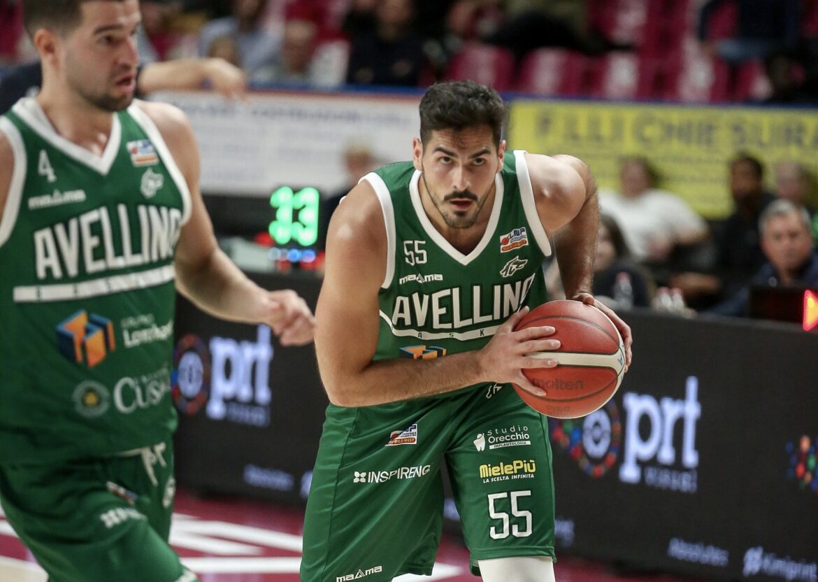 PRIMO QUARTO: Nonostante le assenze, Avellino parte con personalità. La difesa a zona (2-3) e la precisione dall’arco consentono ai biancoverdi di chiudere il primo quarto avanti per 22-26, con Mussini già in evidenza.