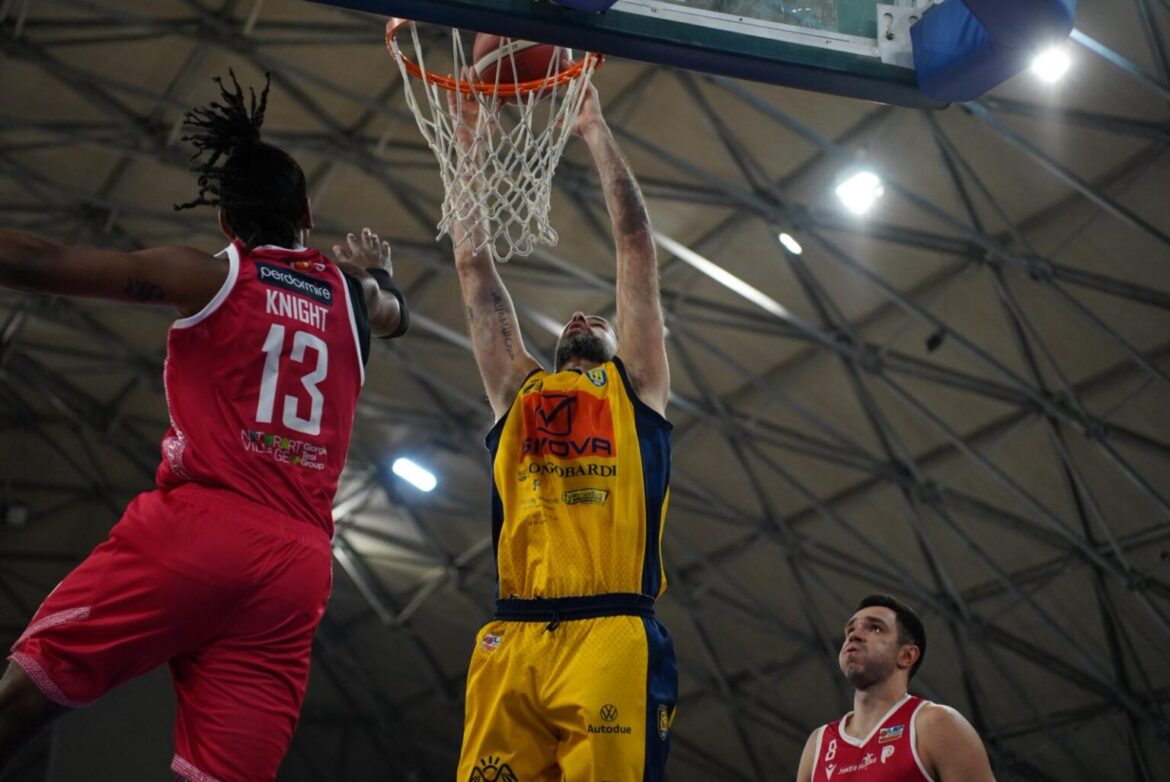 Terzo quarto: Piccoli piazza subito una tripla dall’angolo, seguita da una di Woodson per il 50-43. I gialloblù non riescono a segnare neanche un punto. Un trend interrotto da due liberi di Iannuzzi (50-45), che però non frenano il momento di black out. La squadra campana concede troppo in difesa e continua a non realizzare. Solo altri due liberi, stavolta di Allen. La Givova ora è sotto di 12. Walker segna a 60 secondi dalla fine del periodo, che va in archivio sul 61-49.