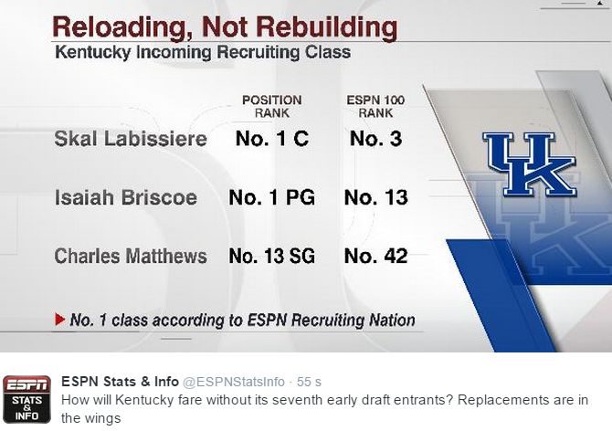 La cosa stupefacente è una principalmente: ogni anno, a causa degli ottimi risultati di squadra e delle fantastiche prestazioni individuali delle squadre a Duke e a UK si perdono vari giocatori tramite il draft, e, ciononostante, il recruiting è sempre di una qualità incredibile e tutte le falle vengono colmate in un batter d’occhio. Anzi, se vogliamo dirla tutta, i due rispettivi staff stanno lavorando sul recruiting delle classi 2017, 2018, e magari anche 2019.