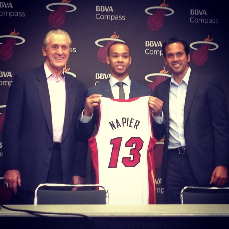 Acquistato la notte del Draft dagli Charlotte Hornets, Shabazz Napier, point guard uscita da UConn e campione in carica in NCAA, è stato presentato quest’oggi dai Miami Heat. Ecco le parole dell’ex giocatore degli Huskies: “Non sono per niente nervoso. Sono eccitato di essere qui e poter giocare a basket in questa città”.