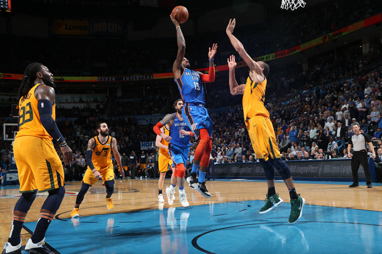 Partita intensa tra due squadre che, come si suol dire in questi casi, non si amano. Jae Crowder e Dennis Schroeder si allacciano nel primo tempo e si vedono fischiare un doppio fallo tecnico, mentre Russell Westbrook nega il canestro a Rudy Gobert con un fallo duro, punito con un flagrant foul dagli arbitri.